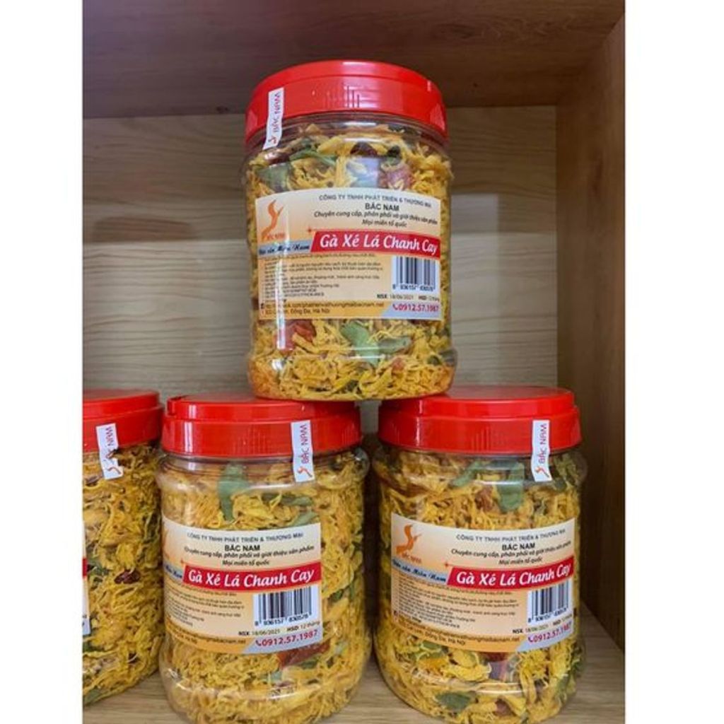 Khô gà lá chanh của đặc sản Bắc Nam được chế biến từ thịt gà tươi ngon, không chất bảo quản được xé nhỏ chế biến cùng gia vị tỏi, ớt, đường, lá chanh. Màu sắc không chỉ đẹp tự nhiên mà vị gà còn thơm ngon, ngọt.
